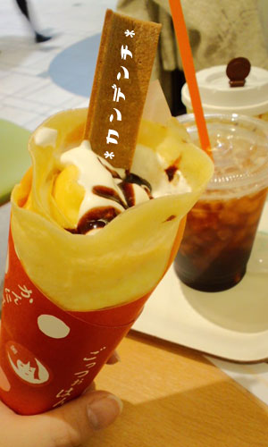 上の写真が、そこの「チョコバナナクレープ」八橋クランチ入り!