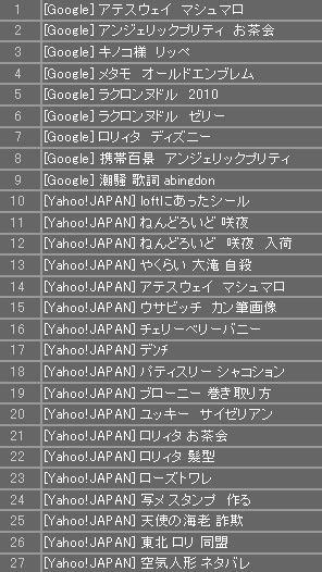期間的には私が東京に行ってた間だけですが、みんな色んな単語で検索してますね~。