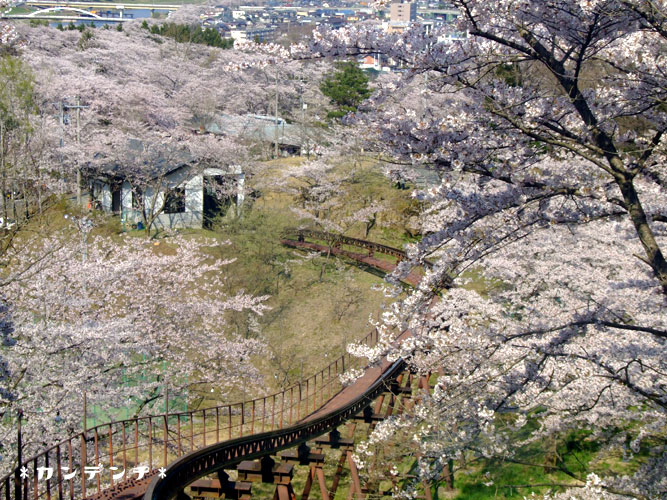 船岡城址までは、スローロープという乗り物に乗ったよ