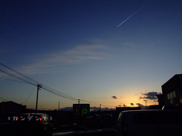 家に帰る途中、飛行機雲がたくさん見えた&夕陽が綺麗だったので撮ってみた。