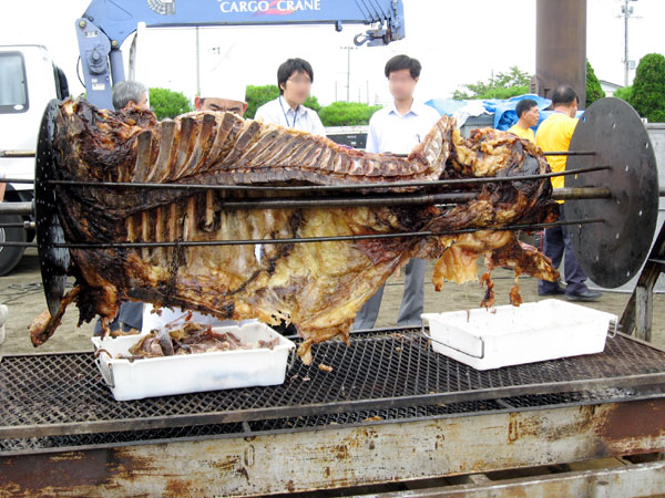 このお祭りの目玉は何と言っても、前日から1日かけて丸焼きにされた、牛一頭!